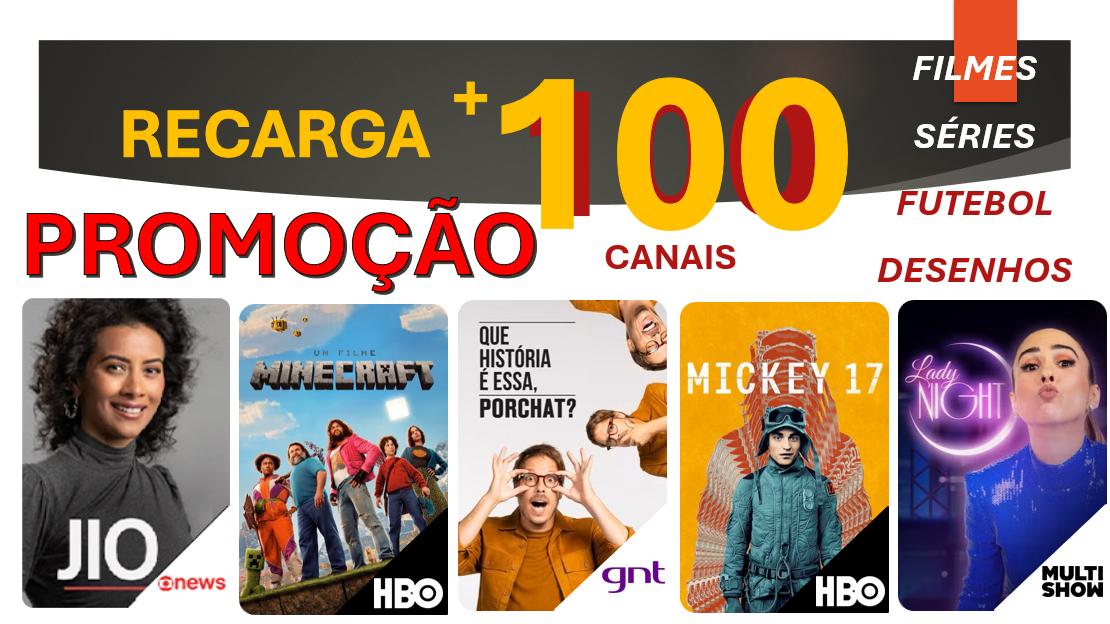 Para curtir a programação quando você mais quer ou em ocasiões especiais. Assista mais de 100 canais. Entre eles: TNT, Globoplay Novelas, Multishow, Cartoon Network, Globonews e Warner.